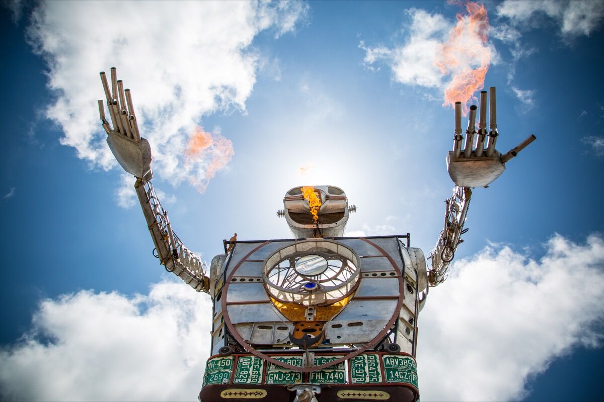 MT: I grew up in Silicon Valley and have been involved in the creation of all sorts of new technology, including solar-powered electric cars, consumer products, and robots. I was worried that many participants would interpret the “I, Robot” Burning Man theme negatively; humans have a general distrust for robots. As a technologist, I’m very optimistic about the future and feel that I have the power to shape it in a positive direction. It would seem that modern society, as evidenced by the litany of dystopian science fiction movies being created, does not share my optimism.